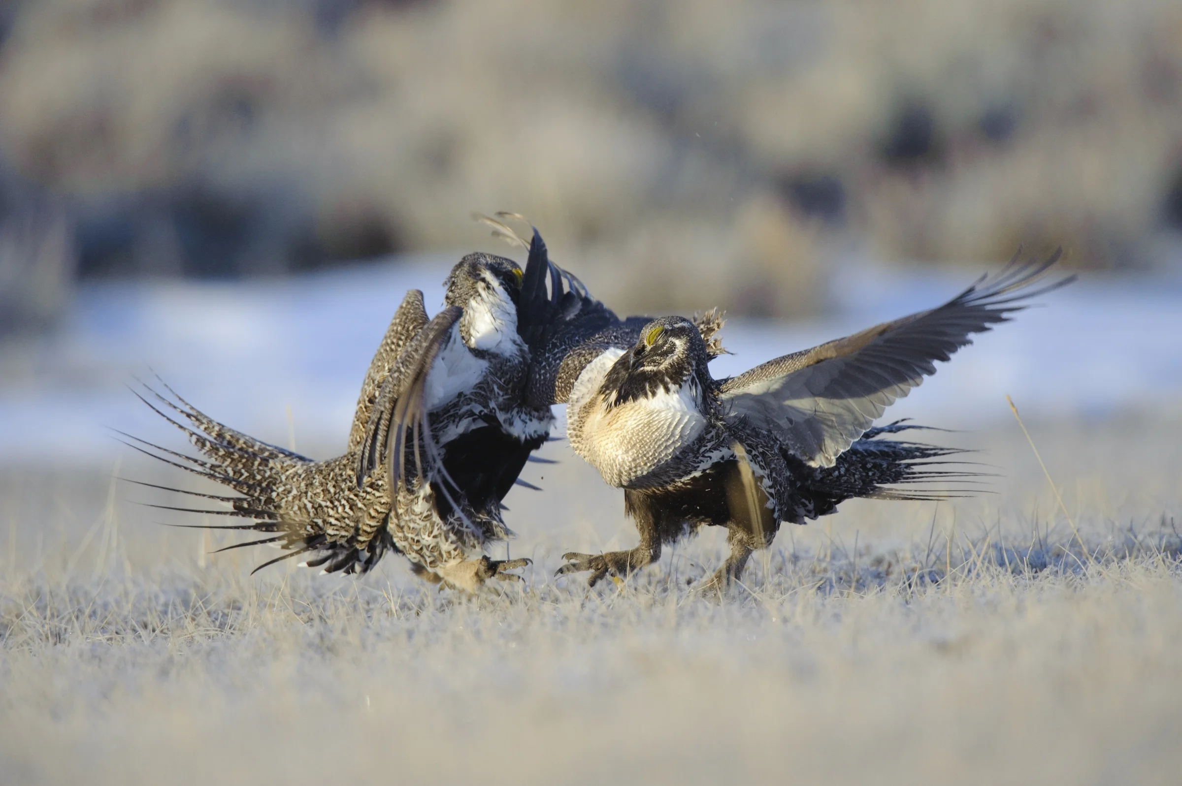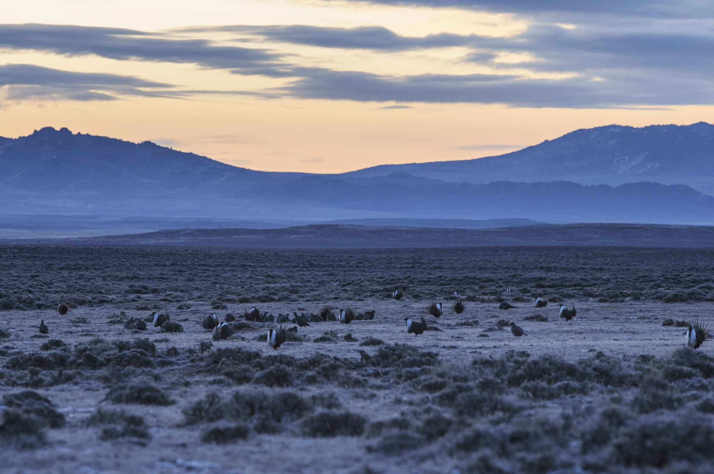 But in the shadow of energy development, these lucrative basins are contested territory. Here, sage-grouse are sensitive barometers for environmental change, and their populations have declined by at least 90% since European settlement. The sagebrush landscape is changing, and some timeless elements of its sense of place — the cascading songs of sage thrashers, the otherworldly booming of strutting grouse, the widely-spaced tracks of a Pronghorn’s sprint — are at risk of fading away.